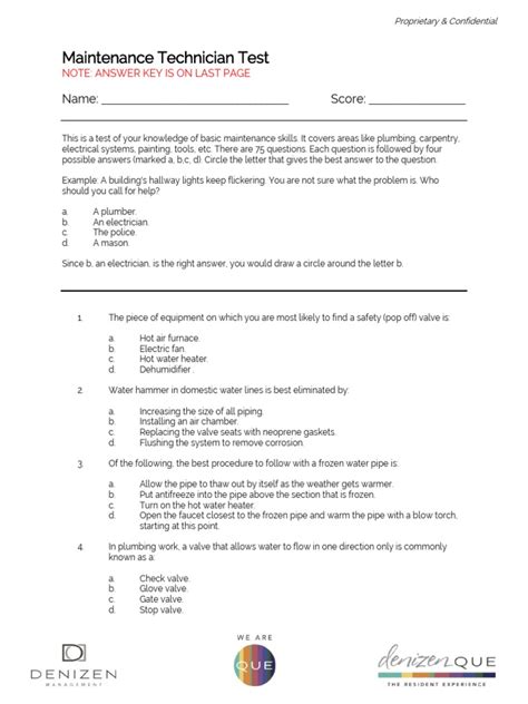 Download Basic Answer Apartment Maintenance Test PDF
