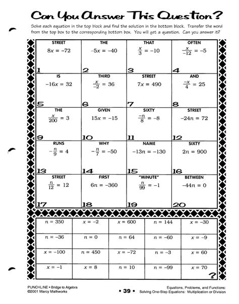 Read Answers For Math Sheet Punchline Algebra Reader