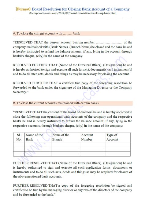 Board Resolution For Bank Account Closing Format Doc By Click Button. Board Resolution For Bank Account Closing Format it’s easy to recommend a new book category such as Novel, journal, comic, magazin, ect. You see it and you just know that the designer is also an author and understands the challenges involved with having a good book. You can easy klick for detailing book and you can read it online, even you can download it